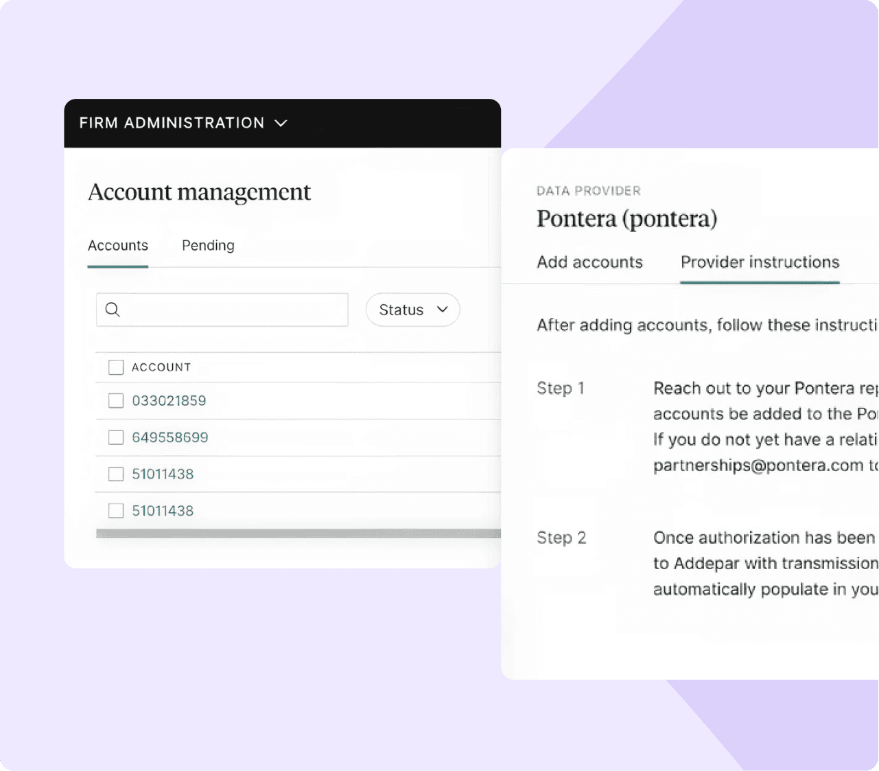 Pontera and Addepar establish the data feed in the background.