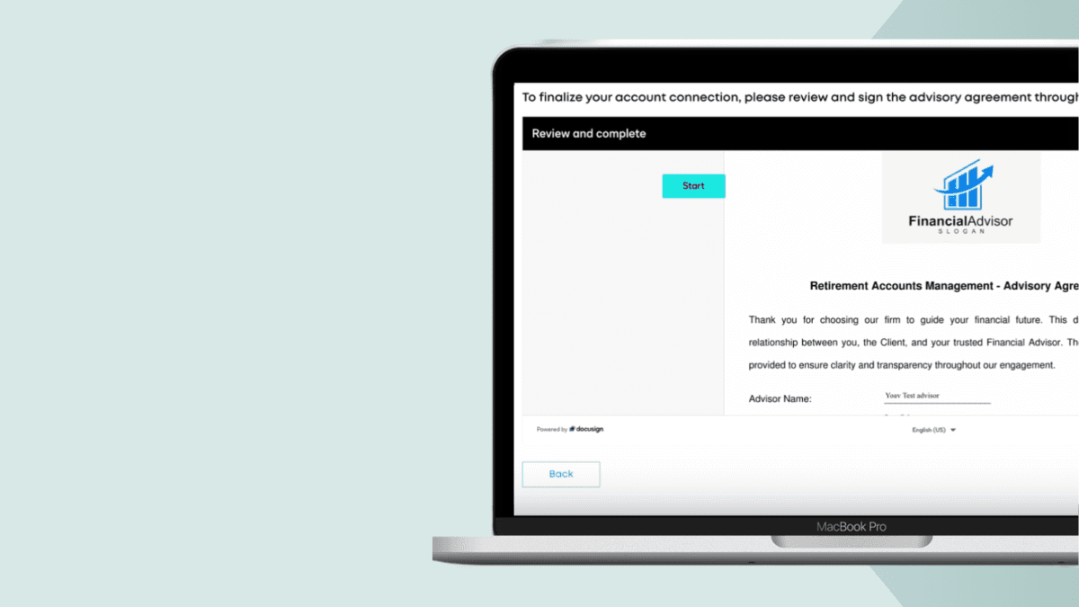 Firms can now use an embedded DocuSign flow for account linking and agreement signing in a single session.