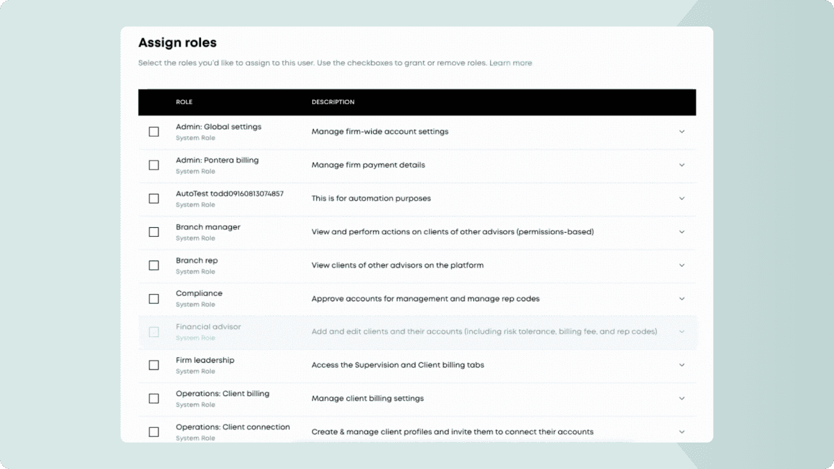 Firm admins can now assign and update user roles directly in Pontera.