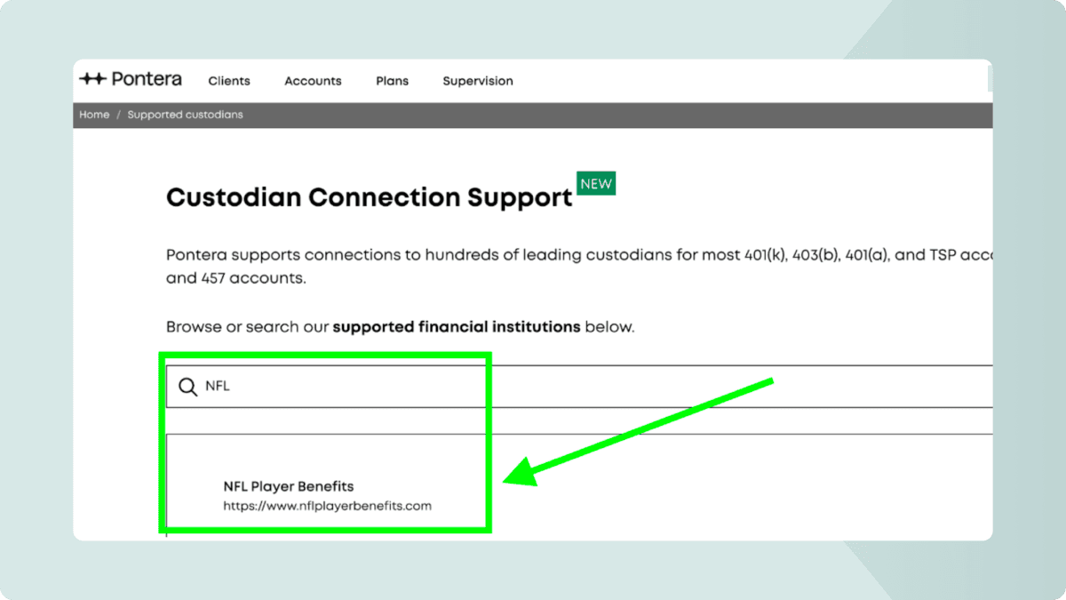 We’re pleased to add NFL to our supported list of custodians, expanding the scope of eligible accounts advisors can connect to Pontera.